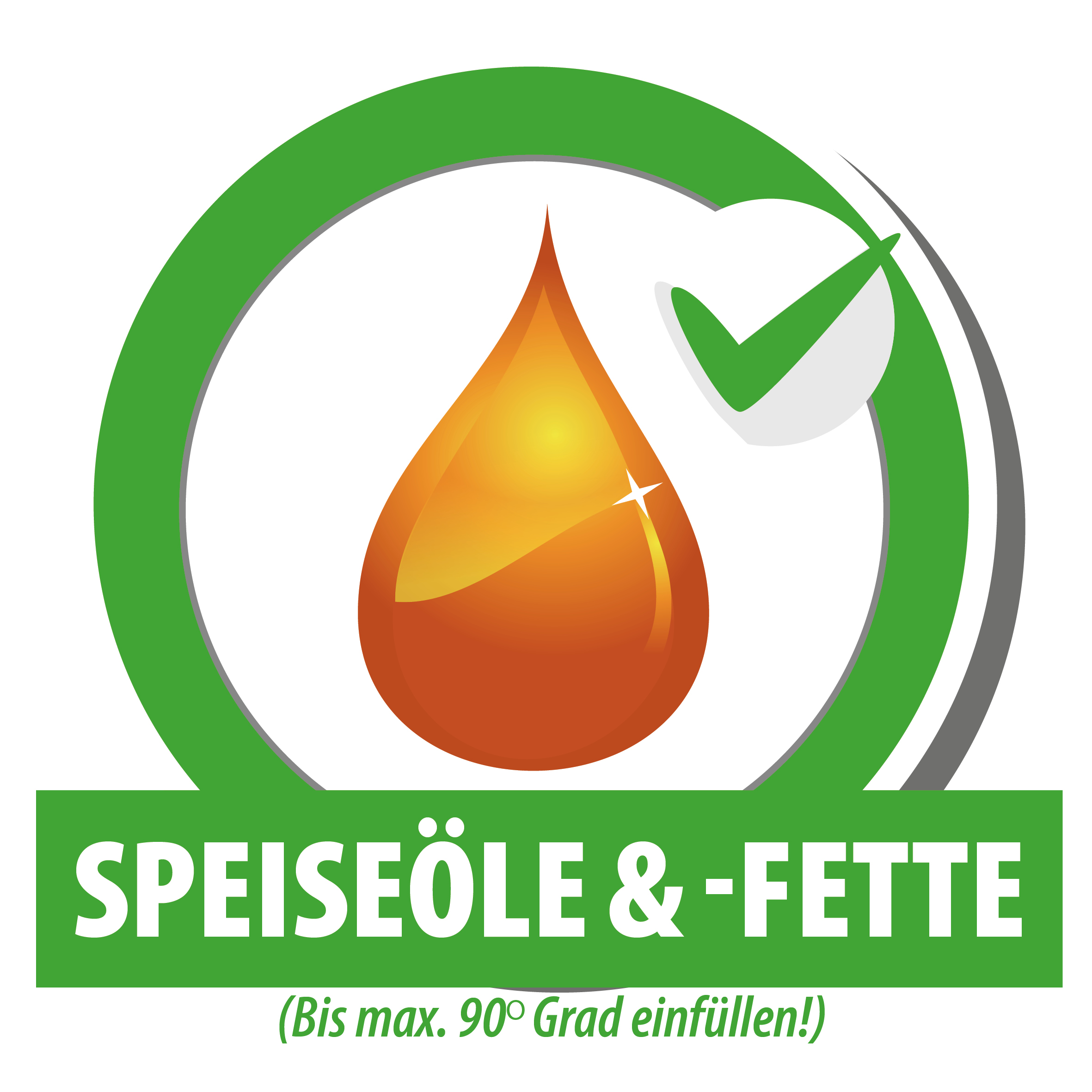 - Füllen Sie bitte nur Öle ein, wenn diese eine Temperatur unter 90 Grad habe, damit der Behälter nicht beschädigt wir.
